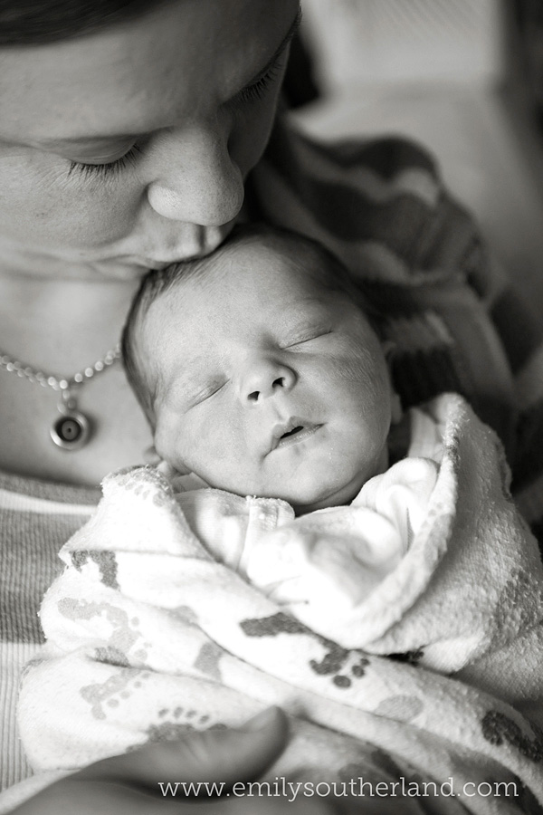 Quinn was born on January 18, 2013, at 8:38am after I'd been in the hospital for only 4 hours. He weighed 7 lbs. 8 oz, was 20.25 inches long, and came out with a full head of dark hair, dark eyes, and a calm, quiet stare for miles. He barely cried. Within an hour he was bathed and measured and swaddled snugly and we were able to settle into a lovely hospital stay as we took that quiet, still, peaceful time to get to know our new little man.